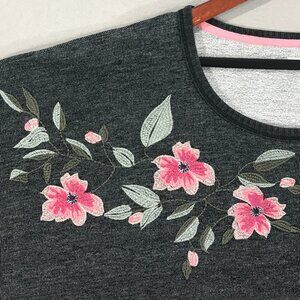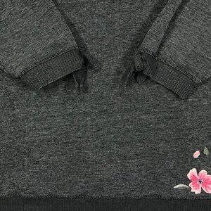 Maurices Sweater Womens 3 Gray Floral Embroidered Pullover Round Neck 3/4 Sleeve