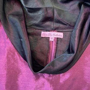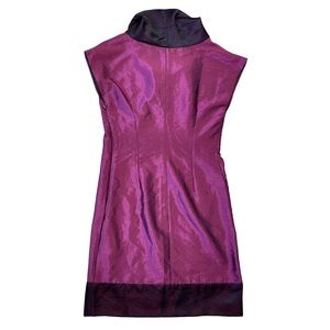 SATRI LOU COLLECTION PURPLE COWL NECK ABOUT KNEE XS DRESS TEXTURED SILK CREPE
