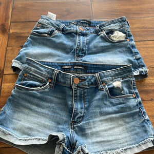 See Thru Soul 2 blue denim jean high rise boyfriend shorts sz 26 distressed raw