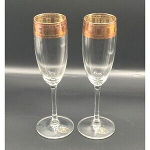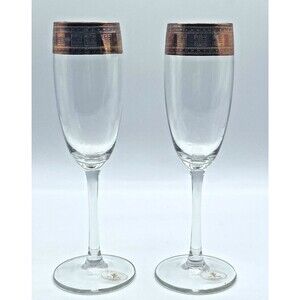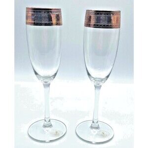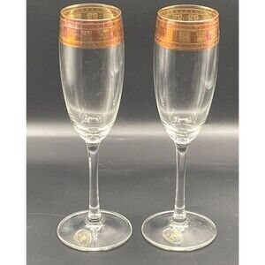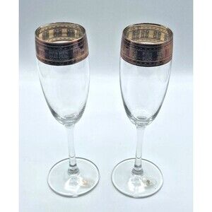 Set Of 2 J Preziosi Italy Gold Greek Key Flutes Glasses