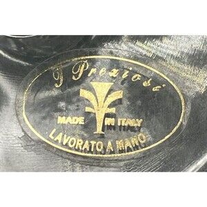 Set Of 2 Murano J Preziosi Glasses Flutes with Gold Greek Key Rim Italy