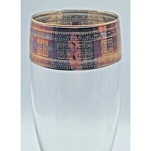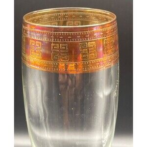 Hand blown glasses feature a classic Greek key pattern embossed in 24k gold leaf
