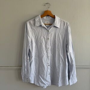 Classic blue and white striped button down shirt. Great condition - one small snag on front (see photo).