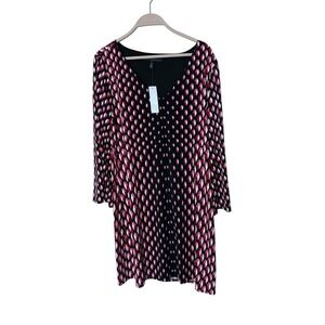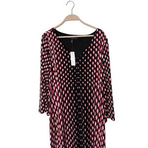 White House Black Market Jersey 3/4 Length Sleeve Dress Black Red Pink White XL