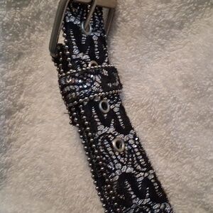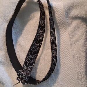 Silver Glitter/Black Belt. 1 1/2" Wide. 43 " Long. Besutiful Belt.