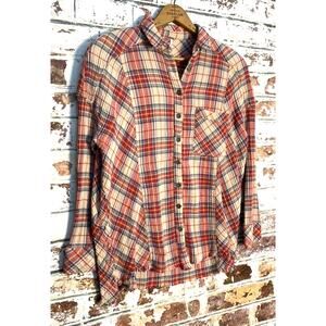 Free People Plaid Blouse in Red and Blue