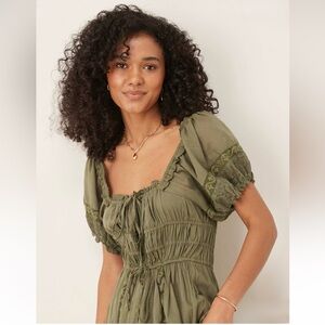 Free People falling sun midi dress in crystal kelp. Feminine cottage core vibes. Perfect for the spring and summer time.