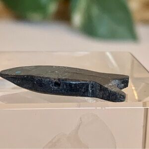 Measures 1” long. Drilled back through belly for stringing.
