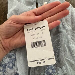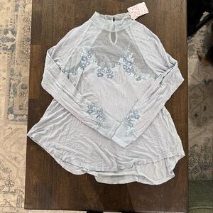 Free People Saheli Embroidered Mock Neck Top – Glacier Ice – XS (NWT)