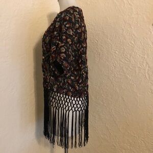 Forever 21 Embroidered Fringed Kimono Black Red Blue Wrap Swim Cover Up