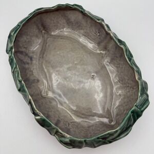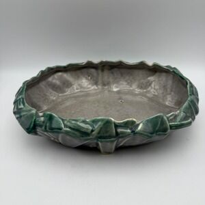 McCoy USA Pottery Cabbage Leaf Bowl Planter Green Gray Vintage 10 Inch Leaves