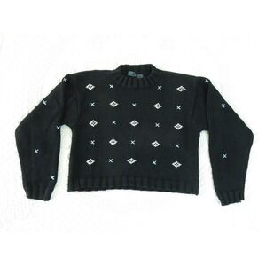 Vtg Liz Wear Embroidered Boxy Crop Sweater Knit Grunge Indie 90s Y2K Cotton