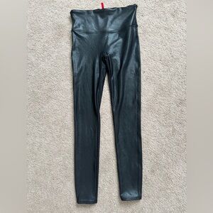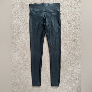 SPANX Women’s Faux Leather Snake Print High Rise Leggings Size Medium Black