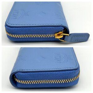 MCM Aren Della Robbia Blue Embossed Monogram Leather Card Case