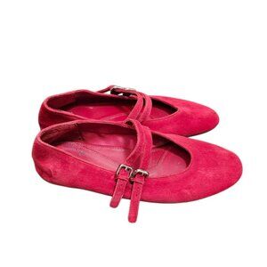 ZARA Red Suede Mary Jane Flats Women EU 40 US 9 Double Strap Buckle Shoes
