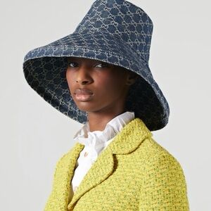 Gucci GG Bucket Hat in Wide Brim Thick Denim Navy Blue Monogram Large
