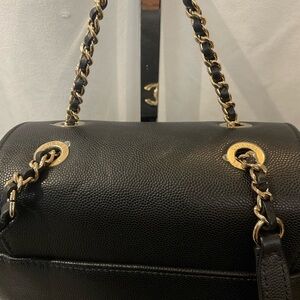 Chanel black quilted caviar leather chain backpack comes with box and duster. 9 inches wide and top to bottom 9 inches
