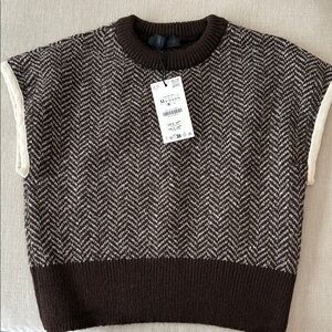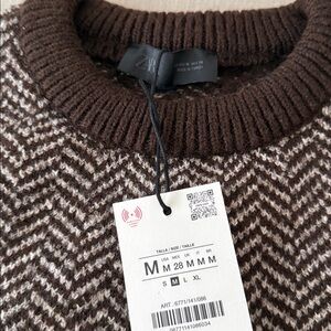 Zara Men's Brown and Cream Crewneck Sweater