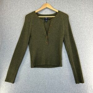 Abercrombie & Fitch Y2K Olive Green Knit Henley Sweater Wool Blend Womens Large