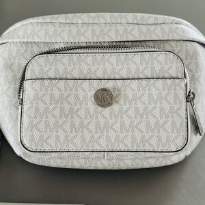 Michael Kors Maisie Large Logo Jacquard 2-in-1 Sling Pack White/Gray NWT