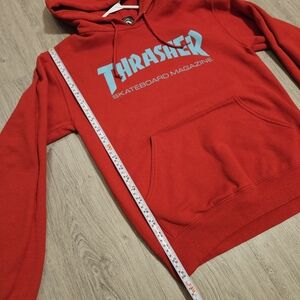 Stay stylish and comfortable with the red Thrasher hoodie. Perfect for casual outings and skateboarding adventures. Pre-Owned; Please note, regular wear and tear is normal as these are vintage and or used pieces. I do my best to identify any flaws or issues that they may have. If you have any questions or concerns, don't hesitate to reach out. Sizing: Pit to pit 18.5" Shoulder seam to bottom 23.5" Arm Length 23" All products are machine washed with non-scented detergents/sheets. Feel free to shoot me an offer if you're not quite feeling the listing price & thank you for your interest!