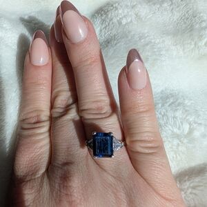 Sterling Silver 925 Emerald Cut Blue Sapphire CZ Ring Size 7