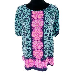 Lilly Pulitzer Marion Short Sleeve Silk Blouse Top Size Medium/Large