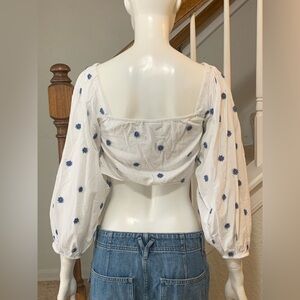 Farm Rio 100%Cotton Boohoo White and Blue Floral Long Sleeves Women's Top S M