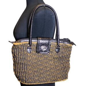 Brighton Shoulder Bag Purse Straw Weave Leather Boho Classic Tan Black