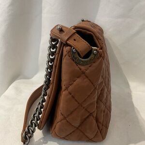 Brown quilted leather flap bag with silver tone hardware comes with box and duster