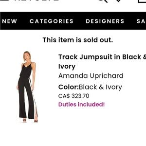 Amanda Uprichard Track Jumpsuit with Contrast Piping and Side Slits Small