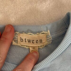 Light blue sweatshirt with a glitter snowflake design. Features charming ruffled shoulders.