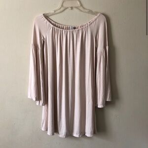 Beautiful Ecote Blush Pink Off The Shoulder dress with bell sleeves. NWOT. Tag has been crossed off. Size small. Perfect for Valentine’s Day!