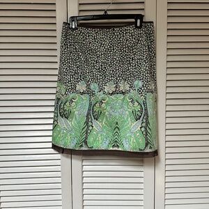 Elie Tahari Cotton Art Nouveau Print Skirt Size 6 Generous Fit