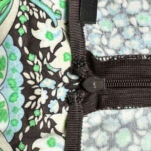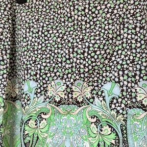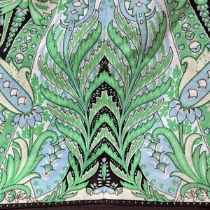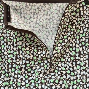 Gorgeous flowing art nouveau style print in brown, blue, green and white. Unlined. Back zipper. Fabric is 97% cotton 3% spandex for comfort and fit. Excellent condition and great tailoring.