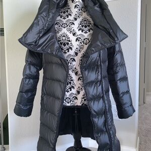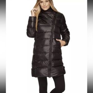 Women's Asymmetrical Quilted Down Winter Coat in size S. This coat is perfect for adding a touch of sophistication to your wardrobe while keeping you cozy during the chilly months ahead. The quilted accents provide a unique texture, while the black color is both versatile and timeless. SOLDOUT and no longer in production. Tags removed, but never worn. Approximately 35" inches long from top of shoulder to bottom of coat. Please know your size, review all pics, and ask all questions prior to purchasing for all sales are final. Thank you.