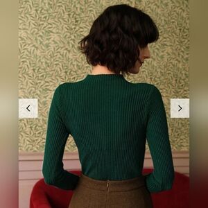 This elegant green ribbed top features a stylish button-up design, perfect for any occasion. Its rich color adds a touch of sophistication to your wardrobe.