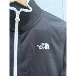 THE NORTH FACE black white contrast zip up satin athleisure mock track jacket