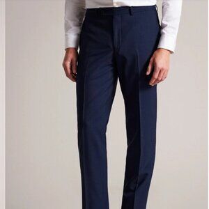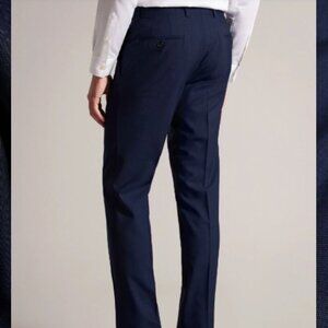 Refined tailoring meets modern sophistication in these Ted Baker London 100% wool dress trousers in deep navy. Crafted in Italy with a sharp slim cut, these trousers offer a structured yet breathable feel—ideal for business, formal occasions, or elevated everyday wear. A versatile wardrobe staple that pairs effortlessly with a blazer or fine knit.