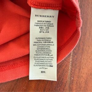 Vibrant red Burberry knit top. Classic style with subtle texture.