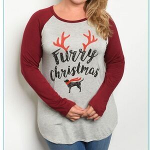 Grey & Burgundy top with "Furry Christmas'