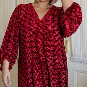 Luxurious red velvet dress with a chic design. Ideal for special occasions.