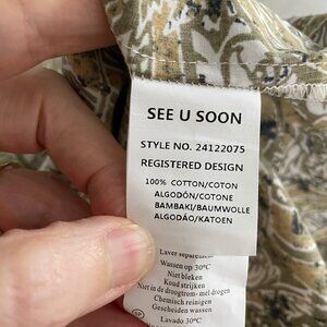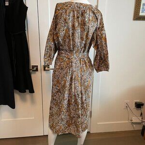 Anthropologie See U Soon 3/4 Slv Boat Nk Split V Cotton Floral Print Dress S/M