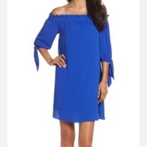VINCE CAMUTO Off The Shoulder Scuba Bardot Float Dress Cobalt Blue