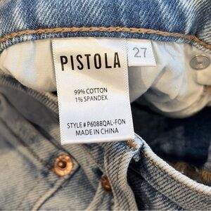 pistola jeans 27, pistola denim women, raw hem jeans, distressed straight jeans, light wash stretch denim, designer denim 27, straight jeans, modern vintage denim, premium women’s jeans, pistola raw hem