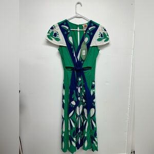 Farm Rio Soft Garden Patchwork Linen-Blend Midi Dress NWT