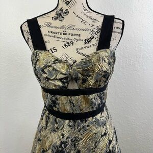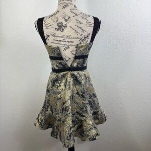 Prose & Poetry anthropologie ruffle flare Elegant Black and Gold Women's Dress