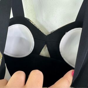 Step out in style with this elegant black and gold dress. Perfect for any occasion, this dress combines sophistication with a modern touch. The unique design and flattering fit make it a must-have in your wardrobe. Wedding guests/ prom