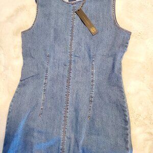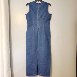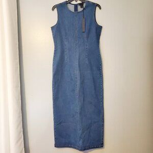 NWT House of Harlow 1960 Denim Midi Dress Medium Sleeveless Fitted Minimalist