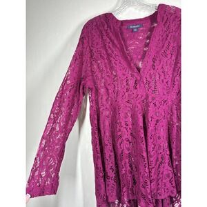 Roamans Magenta Pink Lace V-Neck High Low Tunic Top Plus Size 16W Baggy Loose